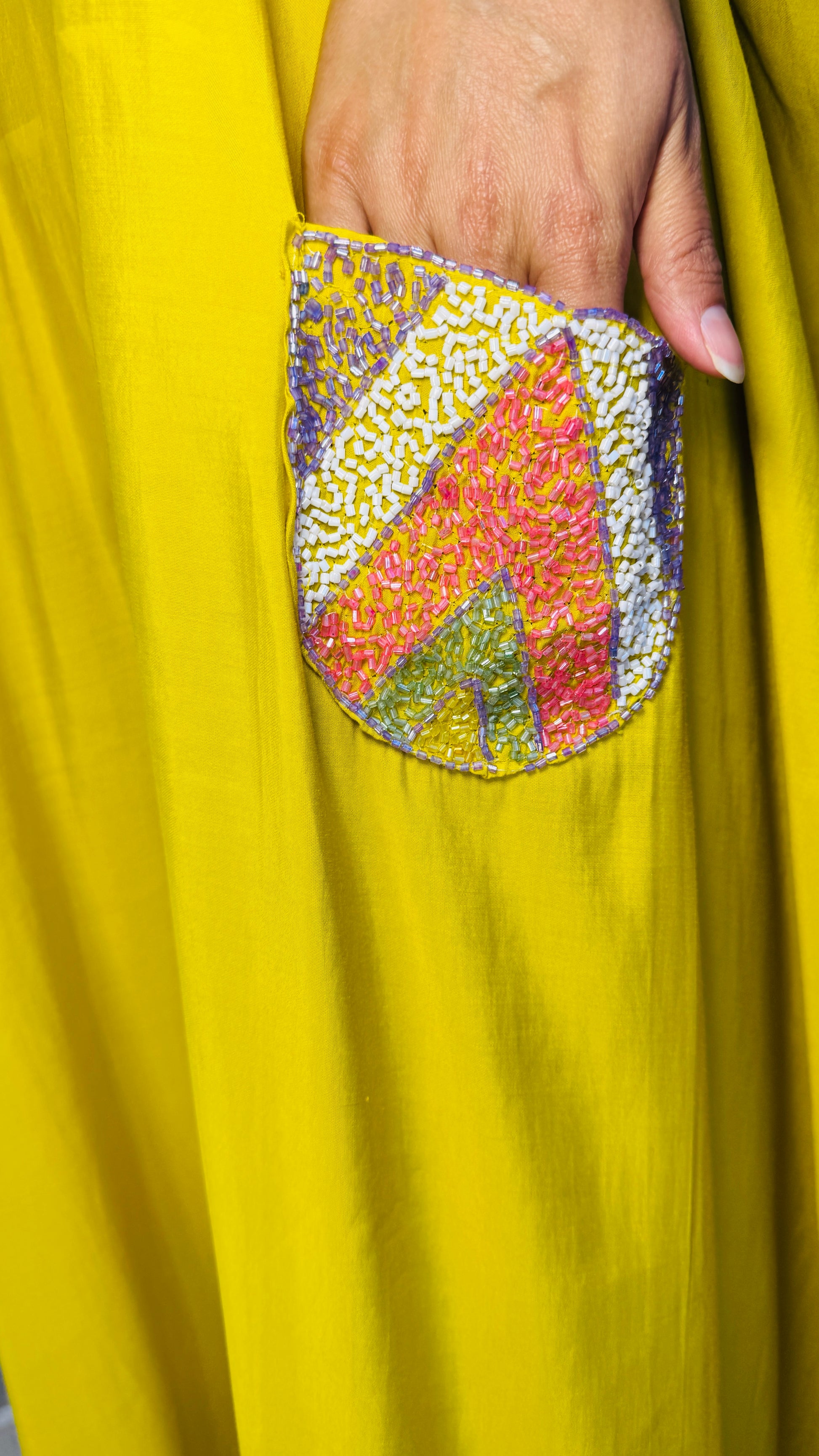 - Color: Mustard Yellow with Multicolor Sequins